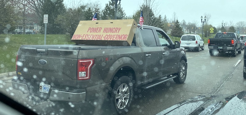 So I went the protest against Governor Whitmer in Lansing. That is to say, the aptly dubbed Operation Gridlock. I think it was a pretty effective protest! Peaceful, with many, many people showing up in the cold, rainy weather.